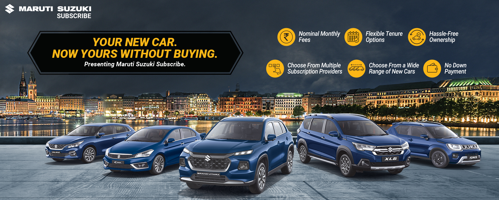 Maruti Suzuki Subscribe enables all customers to enjoy driving their preferred Maruti Suzuki cars without having to deal with all the financial responsibilities that come with owning a car.All you need to do is opt for a monthly subscription plan at a fixed monthly fee, which includes the routine maintenance and insurance costs, and choose a flexible tenure. At RD Motors in, AT Road, Nagaon, all Hatchback, Sedan, SUV, the MUV models line-up includes Baleno, Invicto, EVitara, Jimny, Ciaz, Ignis, Fronx, Grand Vitara, XL6. Here, you will enjoy Maruti Suzuki Subscribe benefits such as: